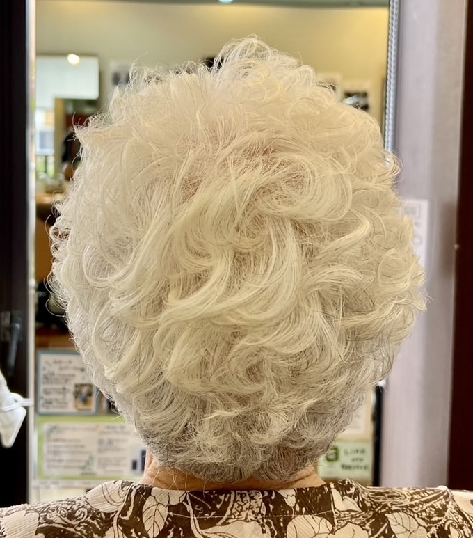 お客様は、以前頭皮トラブルを経験されたことがあったので、薬剤を使うときにはいつも細心の注意が必要なのですが、当店では、特殊な「水」を使って、髪や頭皮を守りながら「パーマ液の効果を高める」ので、とっても安全で、キレイなパーマをかけることができます。